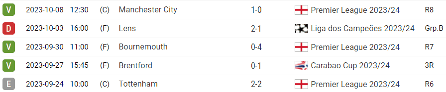 Últimos jogos do Arsenal