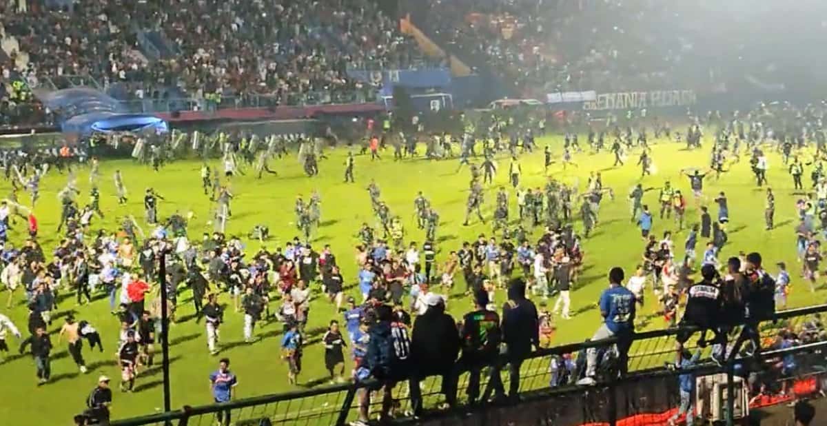 Tragédia no futebol: mais de 170 mortos após invasão de campo na Indonésia A batalha campal aconteceu após Arema FC x Persebaya Surabaya, pela 1ª divisão nacional. Ouvir 03 Outubro 2022 - 09:22 Compartilhar Tweet WhatsApp COMENTÁRIOS 0 Comente Responder a tragédia no futebol indonesia tragedia futebol mortos indonésia Os jogos das seleções na data Fifa de Março Flamengo, Fluminense e Palmeiras se unem visando o Super Mundial de Clubes da Fifa 2025 Com gol no fim da prorrogação, United vence Liverpool em clássico épico de sete gols As melhores imagens de Fluminense 2 x 0 LDU Como assistir o UFC ao vivo e online Aniversariante do dia: O time dos sonhos de Zlatan Ibrahimovic